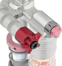 The TRACK™ system momentarily reduces the hydraulic resistance of the shock absorber under extra high speed blows. The pressure threshold at which the TRACK™ System operates and the duration of the pressure relief can be controlled with the TRACK™ star shaped knob.